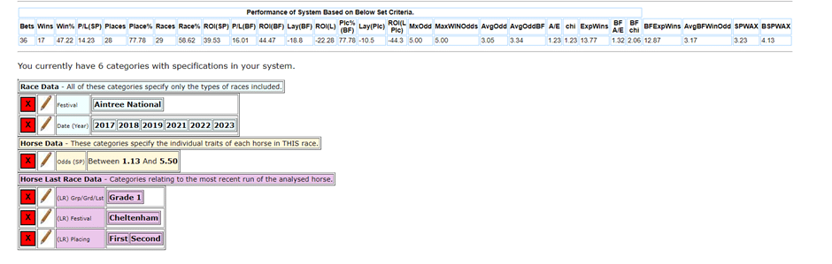 Looking at horses who ran at the Cheltenham Festival. The most promising angle looks to be focus on those runners 9/2 or less and finished first or second in a Grade 1 race last time.