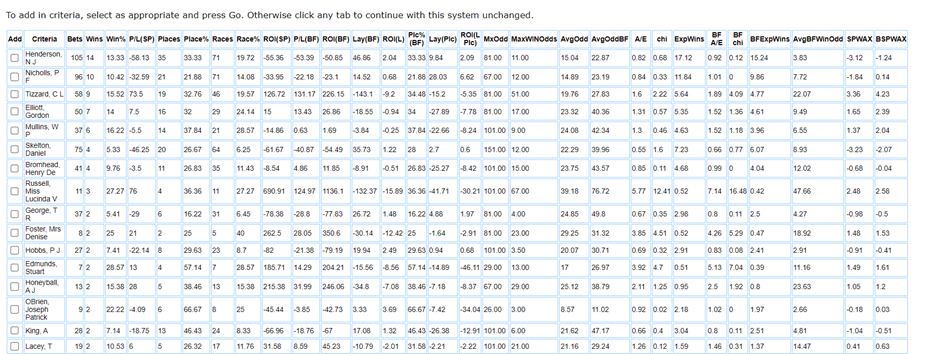 Now switching to those ‘creatures of habit’ the trainers. Who are the trainers who have done well at the meeting in the past five years.