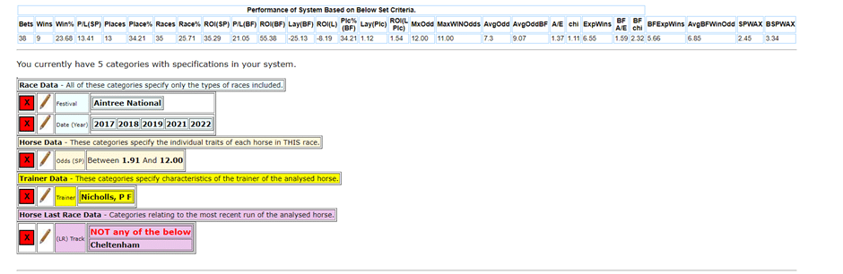 Looking at the Paul Nicholls stats – Nine of his ten winners we’re returned 11/1 or less and didn’t run at the Cheltenham Festival last time.