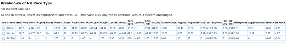Finally, Stuart Edmunds has a good record at the meeting given the size of his yard. Both his winners came in hurdle races with 2 winners from 6 runners +14, 4 placed 67% (+25.10).