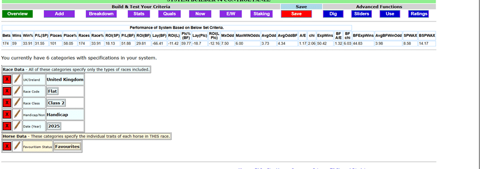 Clear favourites in Class 2 handicaps are striking at nearly 34%. A £1 level-stake profit of £31.55 says punters are reading these big-field handicaps better than usual.