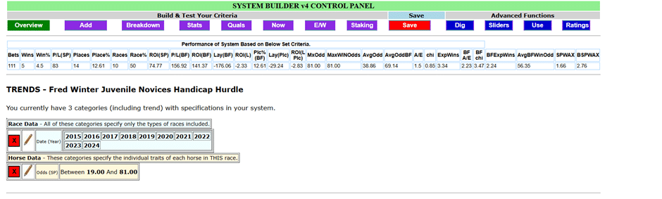 I’ll go through each race and, if I find horses that fit the above criteria, I’ll then assess whether they have the class/form to win and if they are the right price.
