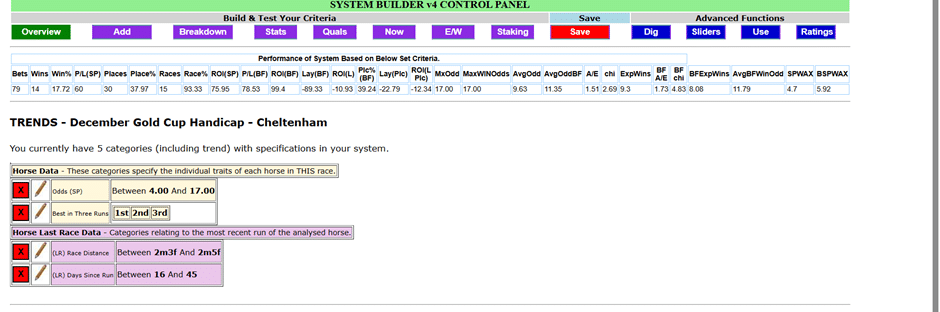 10 of the last 15 ran in the Paddy Power Gold Cup at the November Meeting (10 winners from 72 runners, +26.5, 24 places).
