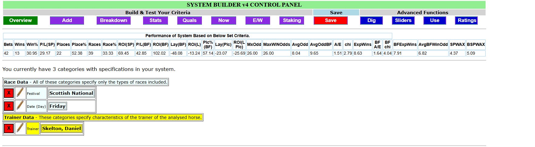 I had a hunch that Dan Skelton had a good record on the Friday of Ayr’s Scottish Grand National and digging into stats I found that he indeed did – 13 winners from 42 runners 31% +29.17, 22 places with an A/E=1.51.