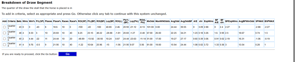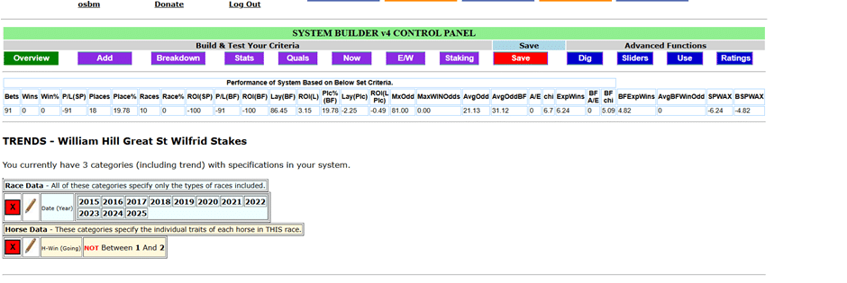 One trend worth noting: horses with fewer than one or more than two wins on the prevailing going are 0 from 91 in the past ten year, though 18 managed to place.