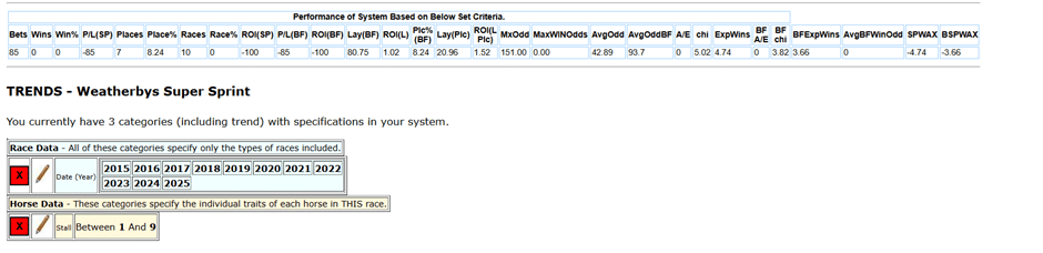 Stall 1 to 9 are 0 winners from 85 runners, 7 places.
