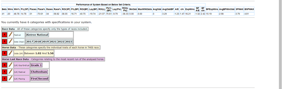Pic D’Orhy saw off Fakir D'oudairies in the Marsh Chase. It was the winners first success in Grade 1 company.  I mentioned in Wednesday’s column Paul Nicholls poor record at the Aintree Festival with his runners coming from the Cheltenham compared to those coming to the meeting having missed Cheltenham. He’s now 1 winner from 34 bets -22 with his Cheltenham runners coming to the meeting.