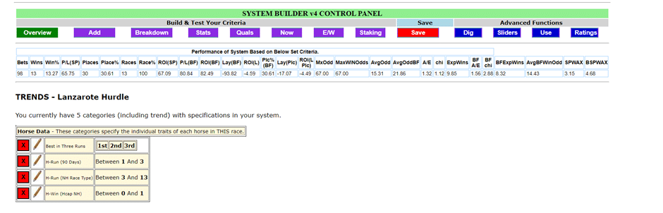 Taking a brief look at the trends which contain 13 winners from 199 runners 45 placed. We can see all the last 13 winners of the race shared the following traits: