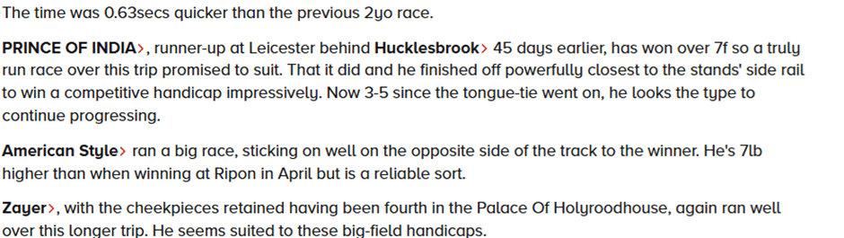 Last Thursday, Prince Of India won a valuable 3-year-old sprint handicap at Newmarket’s July Festival. Here are the Racing Post analyst’s notes for the first three home.